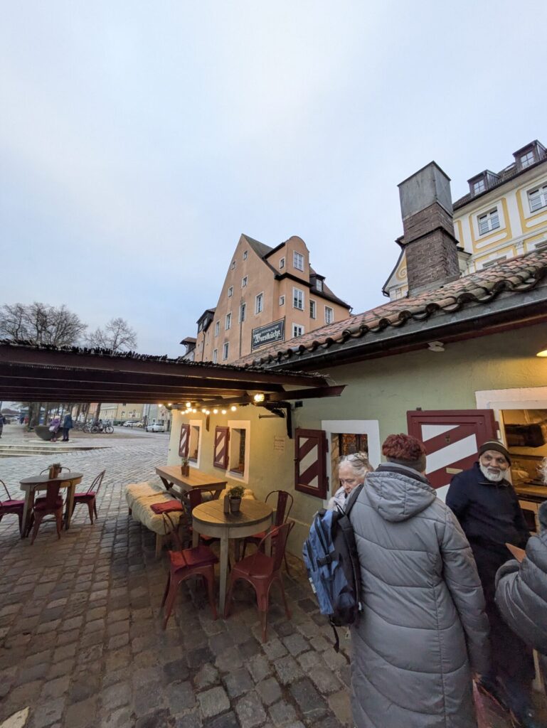 石橋のすぐそばにある、900年以上の歴史を持つといわれる世界最古のソーセージ専門店です。炭火で焼かれた香ばしい匂いが漂ってくると、ついつい誘われてしまいます。少し小さめのソーセージを、自家製の甘いマスタードをつけて食べるのがお決まり。川沿いのベンチで、ドナウ川を眺めながら食べるランチは最高です。